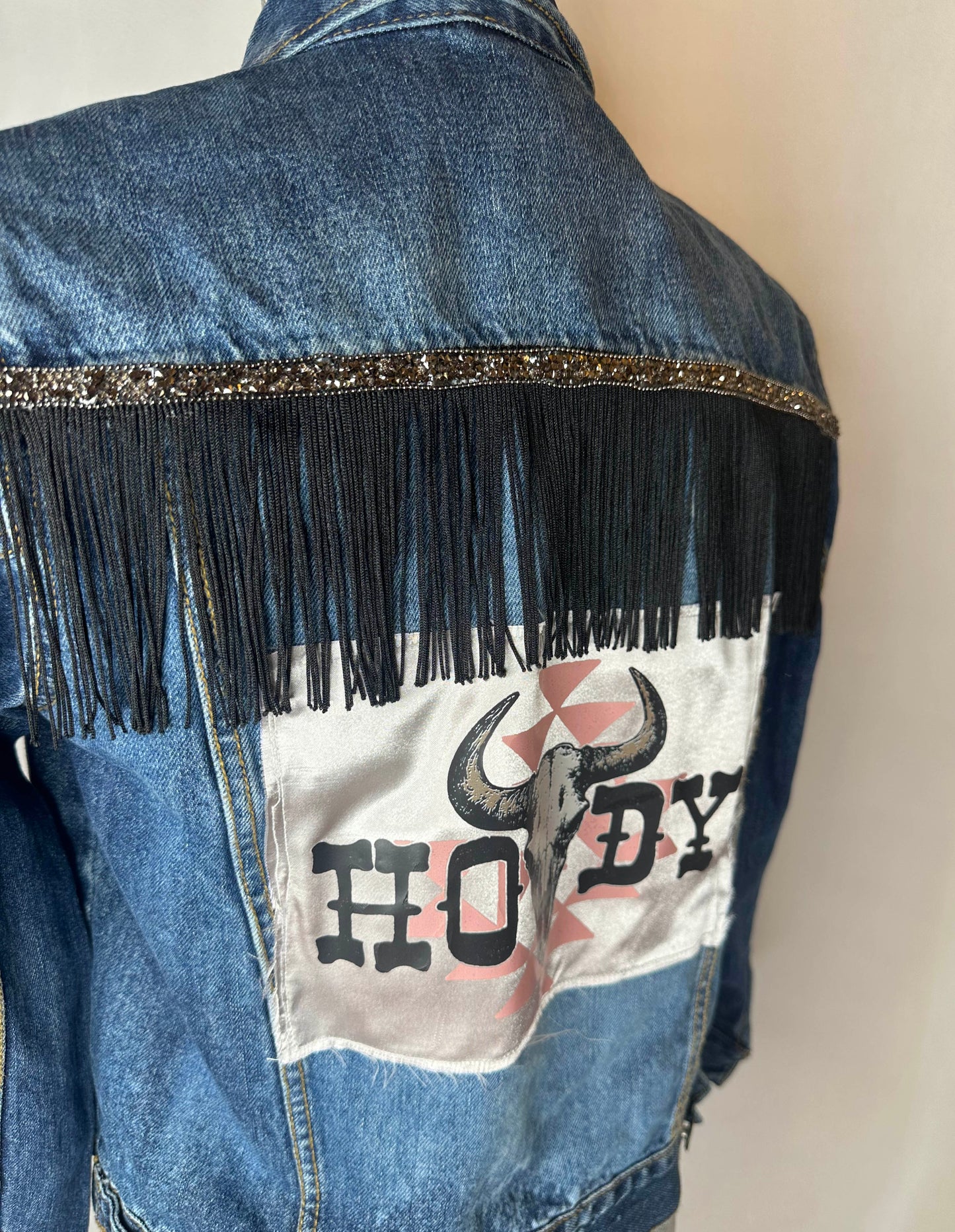 - Fringe & Rhinestone Detailing: Slight stonewash, satin patch with black fringe and crystal strip. Adds instant sparkle and edge—perfect for lighting up festival nights.