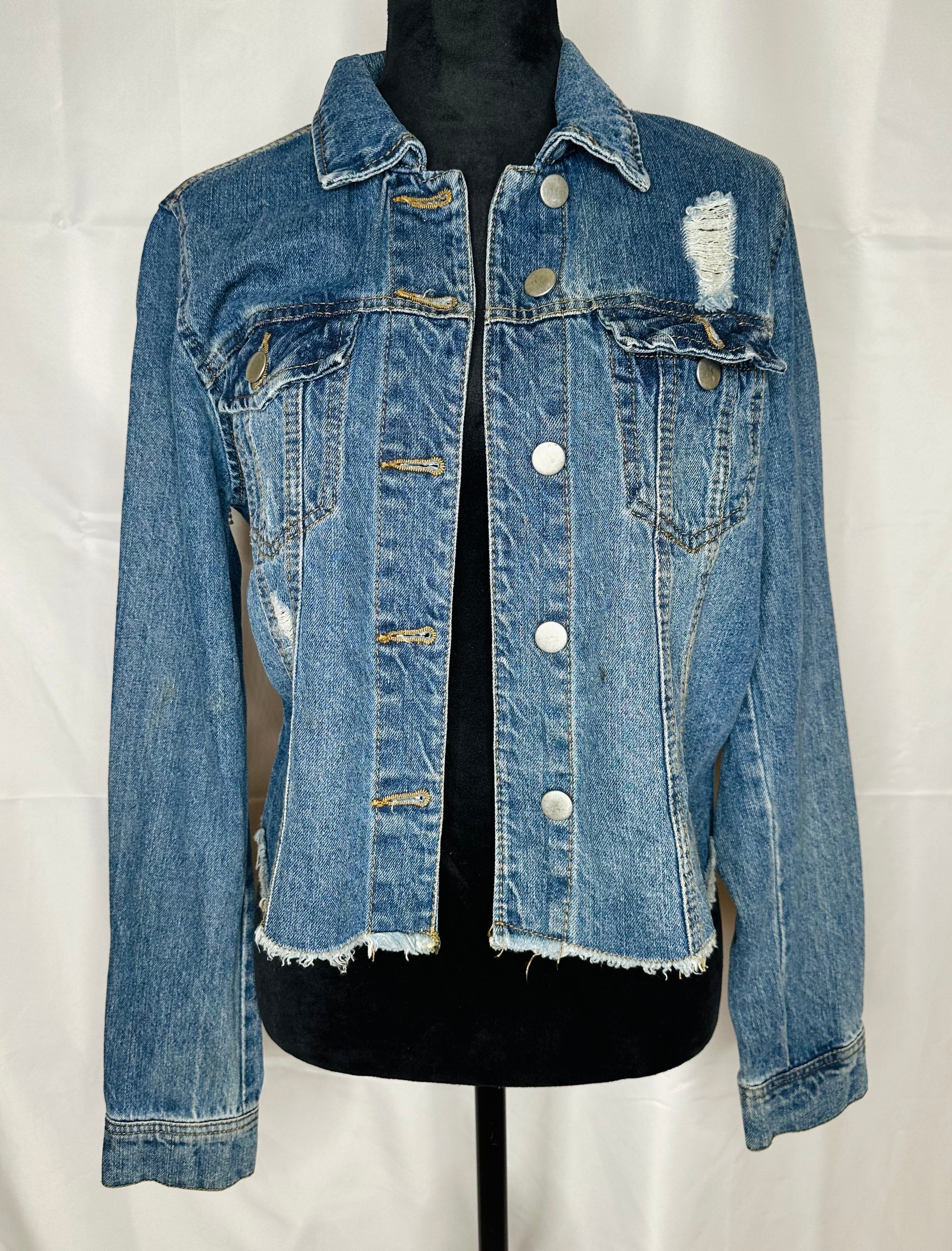- The satin patch edges will fray with wear; this is part of the distressed look.